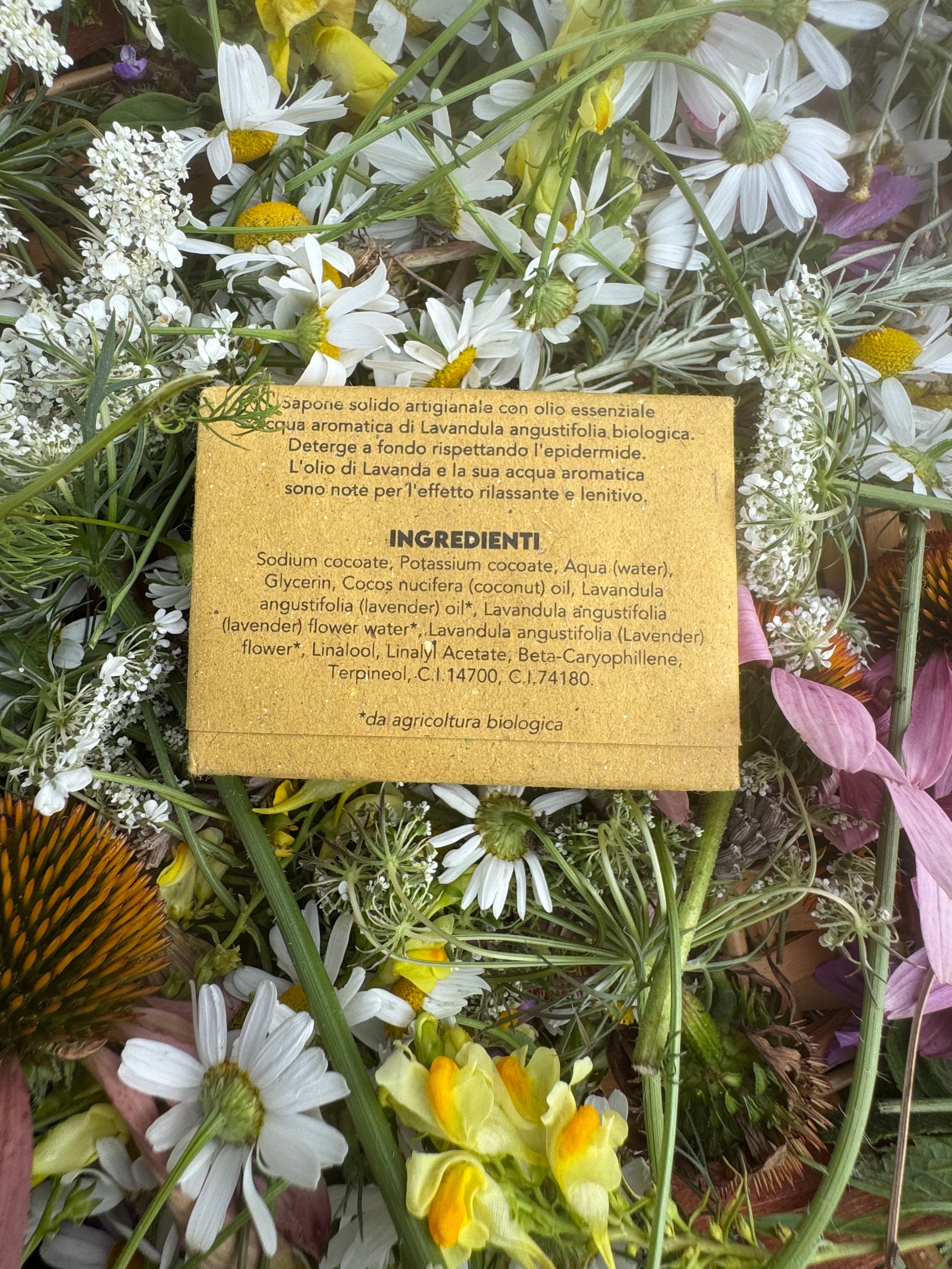 Solid soap (100g) with only natural ingredients. Available in lavender and lemon balm scents.