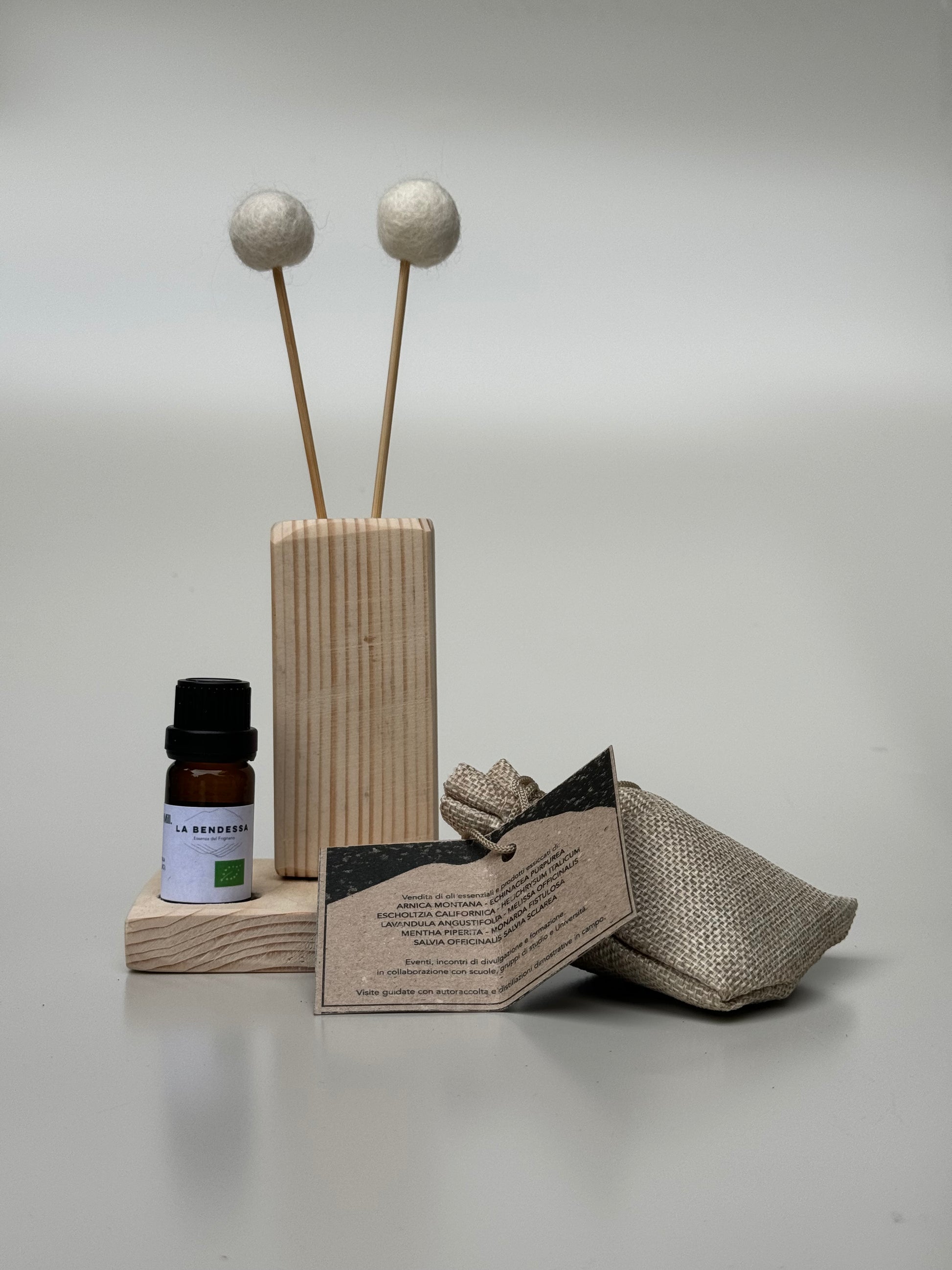 Profumatore artigianale fatto a mano, con olio essenziale di lavanda angustifolia (10ml) e fiori di lavanda angustifolia essicata e sgranata.